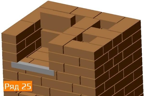• 25 ряд. Кладка печи своими руками производится согласно порядовке, нужно 12 кирпичей.