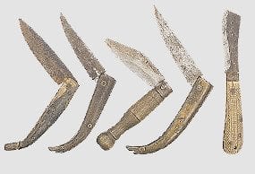 600–500 г. до н. э. — первые римские складные ножи. Ножи имели чисто утилитарное назначение и использовались до полного изнашивания, поэтому до нас дошло крайне мало ножей того времени в полной сохранности.